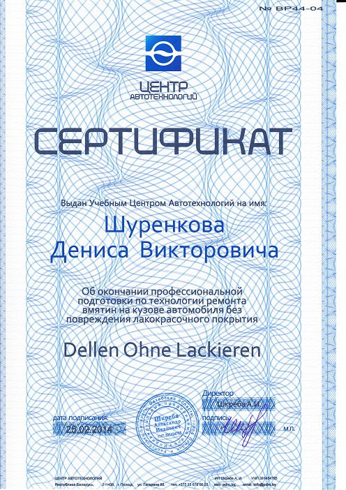 Расширенные курсы по беспокрасочному ремонту, подтвержденные сертификатами, включая международный.